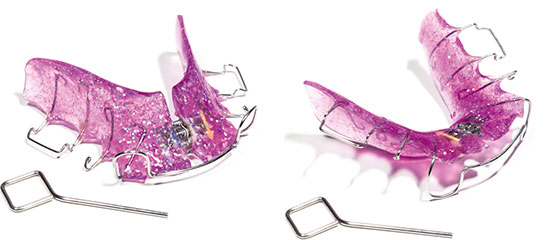 Herausnehmbare Plattenapparaturen sind eine Möglichkeit, um Zahn- und Kieferfehlstellungen bei Kindern und Jugendlichen zu behandeln. Die Apparaturen werden in unserem hauseigenen zahnmedizinischen Labor individuell angefertigt. Die jeweiligen Farben können von den Kindern und Jugendlichen selbstverständlich individuelll ausgesucht werden.